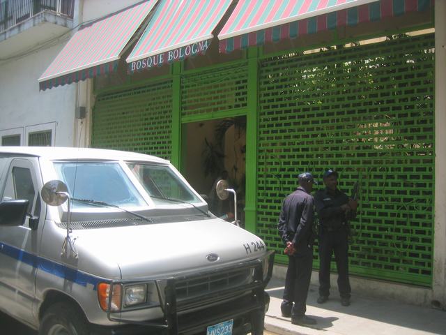 We wound up in the Cafe Paris for lunch. I can't say the food was great but it was adequate. They had the old-fashioned non-smoking section where one half of the room had a red sign and the other had a green one while fans helped to circulate the air and smoke all around. A band started to play in the back (that tends to happen a lot here) and I wound up buying a CD from them. While U.S. law forbids us from bringing stuff from Cuba back into the States, this doesn't apply to publications and information, and CDs are specifically defined as information. Works for me.